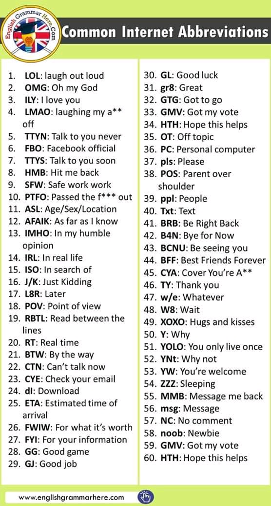 I know many of us here are on this table, but not to worry, this post will help you understand some of these internet slangs/abbreviations and how to use them effectively